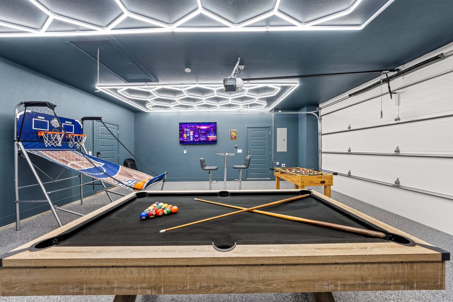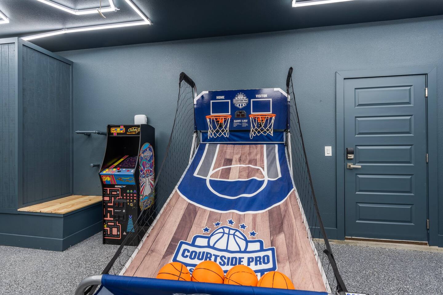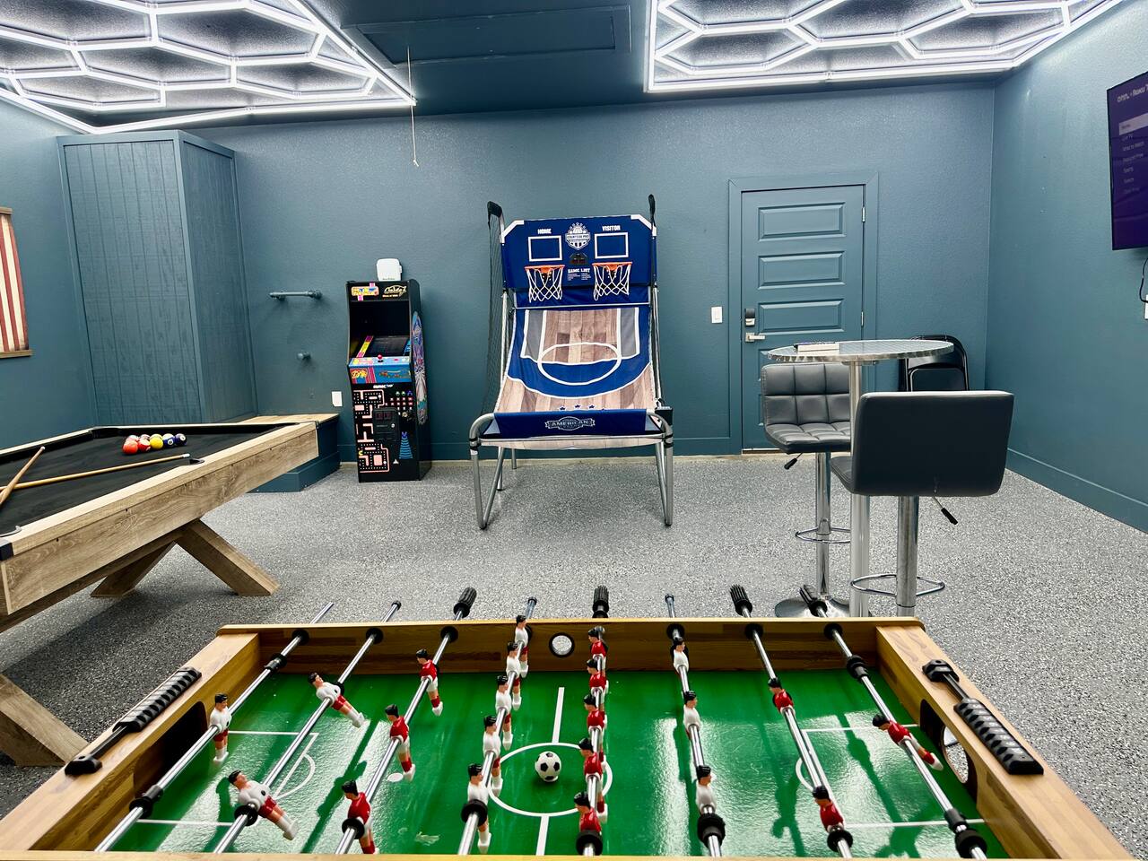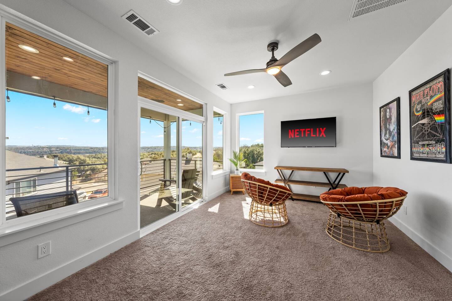 Escape to Valley Hill Haus, a spacious Lake Travis retreat in the Point Venture community. Designed for group trips, family weekends, and laid-back time together, this home offers over 2,300 square feet, a private game room, inviting outdoor spaces, and access to sought-after neighborhood amenities. It is an easy mix of comfort, entertainment, and resort-style convenience, with plenty of room to spread out while still enjoying that shared vacation feel. Why guests love staying here • Spacious layout for families and groups • Converted garage game room with AC and heat • Multiple patios and outdoor spaces for relaxing • Great setup for both adults and kids to have their own space • Full kitchen and generous dining areas • Four-bedroom layout with flexible sleeping arrangements • Access to Point Venture amenities including pool, golf, sports courts, beach, and lake access GAME ROOM FUN The converted garage has been transformed into a fun hangout space that is often a favorite part of the stay. It includes: • Pool table • Foosball • Arcade basketball game • Arcade cabinet with classic games • TV • Air conditioning and heating for year-round fun It is a great space for kids, teens, and adults alike, especially after a day on the lake or at the pool. COOKING AND DINING The kitchen is set up to make group meals simple and convenient. • Full kitchen with modern appliances • Generous counter space • Dining table with seating for 6 • Additional counter seating for 6 • Coffee station with Keurig, drip coffee maker, electric kettle, and starter coffee supplies Whether you are making breakfast before heading out or sitting down for dinner together, there is plenty of room to gather. RESORT-STYLE AMENITIES One of the biggest perks of staying here is access to the Point Venture community amenities, which offer much more than just a place to sleep. Enjoy access to: • Community pool • Pickleball, tennis, and basketball courts • 9-hole golf course • Disc golf area • Private beach and lake access • Boat ramp • Floating restaurant • Sports bar • Fitness gym • Waterfront park and play areas Guests love how much there is to do nearby without needing to leave the community. ROOM FOR EVERYONE There are four bedrooms with a flexible setup for families and groups: • Bedroom 1 downstairs: bunk bed with lower full and upper twin, plus a separate twin bed • Bedroom 2 downstairs: king bed, TV, ensuite bathroom • Bedroom 3 upstairs: queen bed, shared full bathroom • Bedroom 4 upstairs: king bed, TV This layout works well for mixed groups, including adults traveling together, families with kids, and multi-generational stays. A GOOD FIT FOR... • Family vacations • Friends’ getaways • Lake weekends • Golf or pickleball trips • Groups wanting both activity and downtime Valley Hill Haus is set up to help your group relax, reconnect, and make the most of your time at Lake Travis.